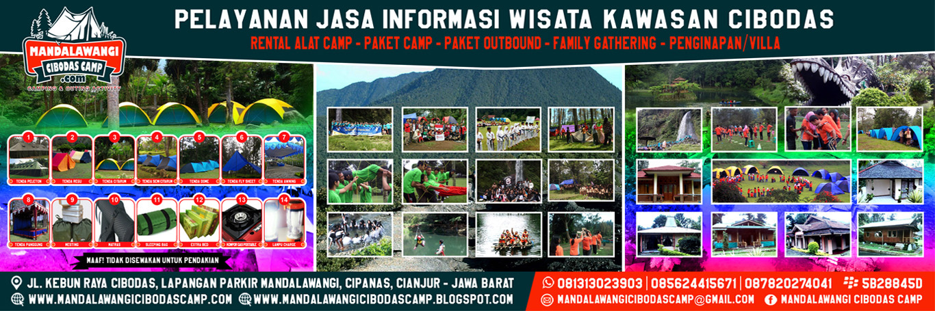 Mandalawangi Cibodas Camp Kegiatan kemping di alam bebas sangat menyenangkan baik itu dilakukan oleh keluarga maupun bersama teman-teman dengan kegiatan ini bisa merasakan tidur di alam terbuka serta merasakan segarnya udara pegunungan. Kawasan wisata dilereng kaki gunung gede pangrango dengan udara yang sejuk sangat diminati dan menjadi tujuan para pecinta alam untuk melakukan kegiatan outbound. Kami menyediakan berbagai paket untuk kegiatan outbound yang menyenangkan, konsultasikan terlebih dahulu, kami dengan senang hati siap membantu.